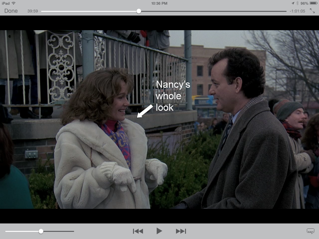 Lead characters, though—they'd need either multiple copies of stuff or some good time spent on caring for the singular items. Phil's coat, for example--there seems to have been only one; Harold Ramis mentions more than once in the commentary track how he kept that coat after production was completed.