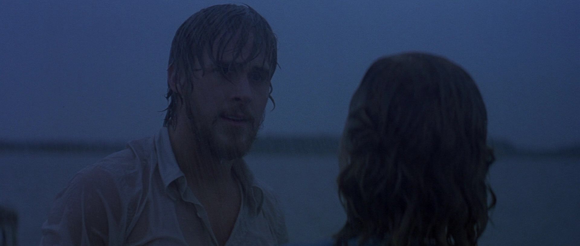 Allie adds, "You know, you're kinda the same though." At this point, they are of course still transitioning, still stuck at least partly in their past selves, their past ideas of who they are and how they can be together. Then comes the storm. A cleansing rain like The Shawshank Redemption, Garden State, Forrest Gump, and (in a reverse cleanse) Unforgiven... not to mention so many more that just aren't coming to mind right now. It's a bit obvious, but we fall for it often. Water washes away the past, washes away mistakes. And, on film, we like our metaphors to be a bit obvious sometimes, so we can move on to other things.